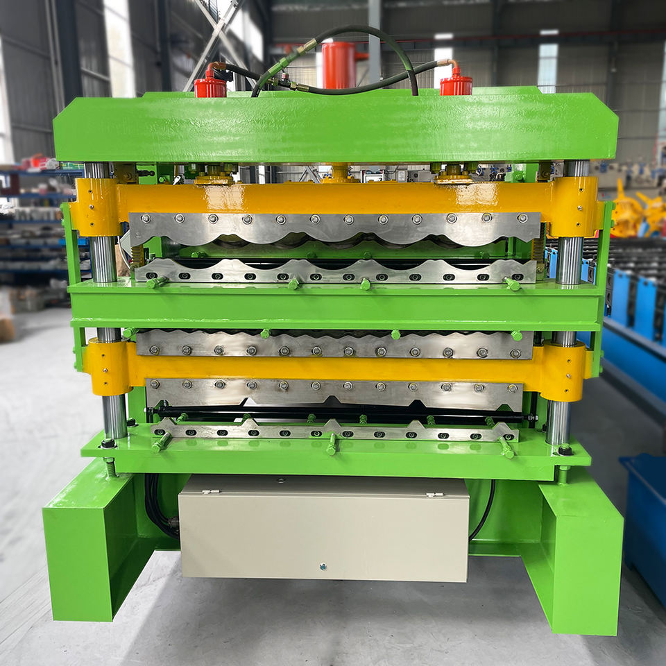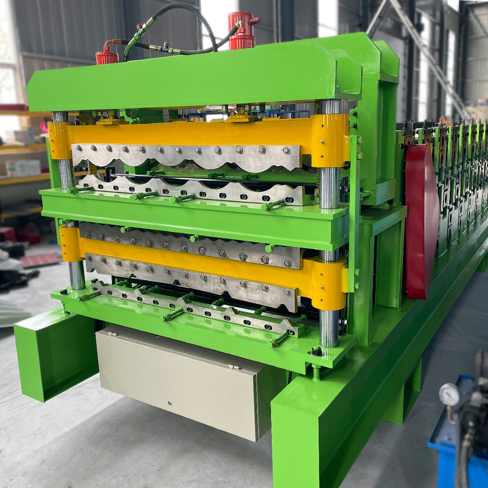 เครื่องขึ้นรูปม้วนแผงหลังคาด้วยมอเตอร์เครื่องขึ้นรูปสามชั้นเครื่องจักรทำกระเบื้อง