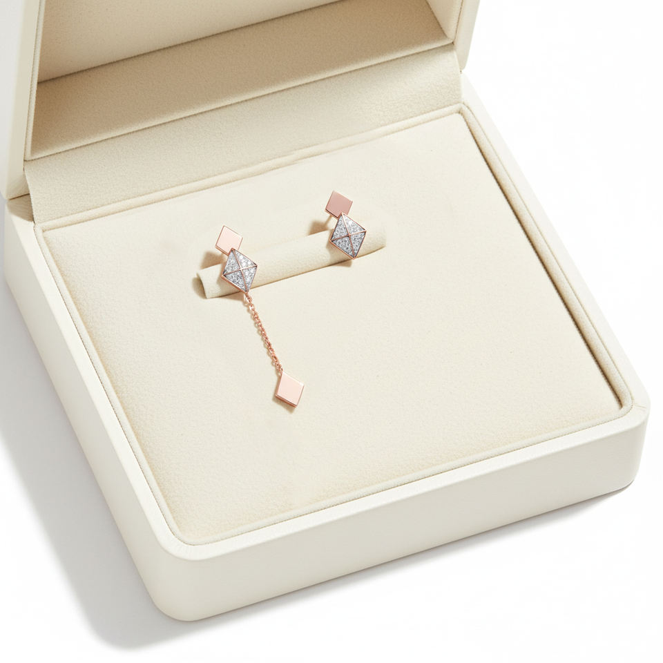 ต่างหูเพชรแท้ทรงสวยทันสมัยขายดี งานแฮนด์เมด ทองคำแท้ 18K สีโรสโกลด์ เหมาะสำหรับผู้หญิงใส่ทุกวัน