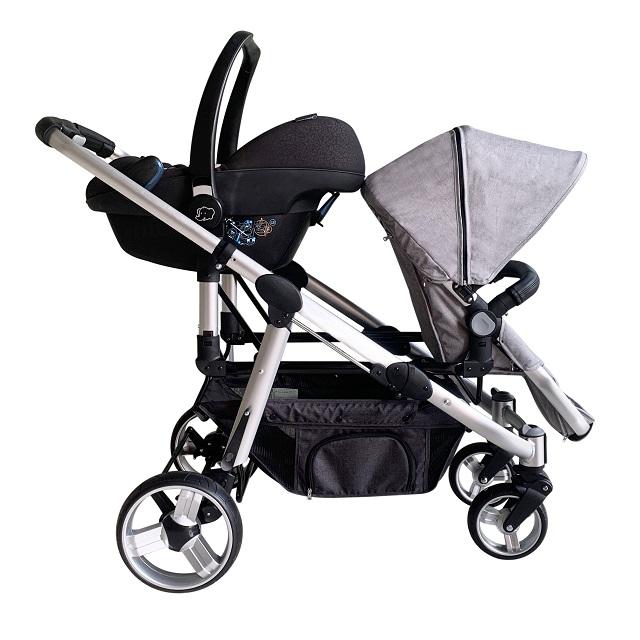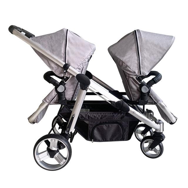 รถเข็นเด็กคู่คุณภาพสูงแบบขายส่ง 3-in-1 โครงอะลูมิเนียมแบบสูง ที่นั่งคู่ พับได้ ผ้าหุ้มขนาดใหญ่
