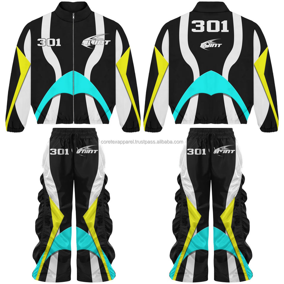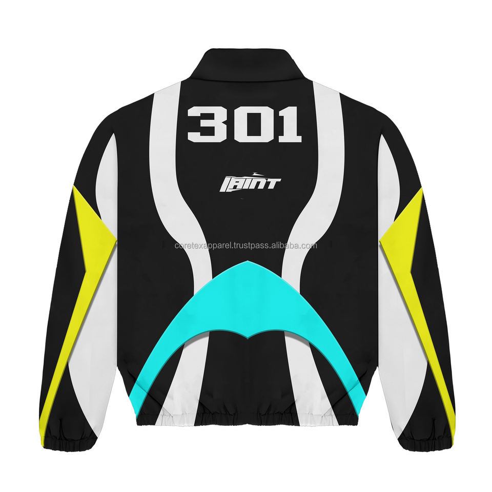 ชุดเสื้อกันลมคุณภาพสูง ผ้าโพลีเอสเตอร์ 190 GSM ทอเรียบ ตกแต่งด้วยแผงหลากสี พร้อมโลโก้แบบกำหนดเอง