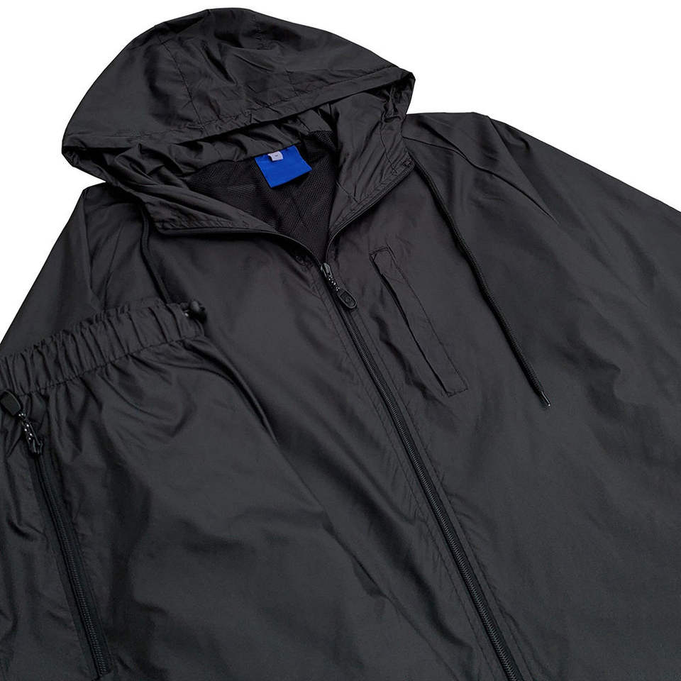 ชุดวอร์มกันลมคุณภาพสูงสำหรับผู้ชาย แบบ 2 ชิ้น ชุดเซ็ตพร้อมโลโก้สั่งทำ ซิปแบบรูดขึ้นลง ผลิตจากไนลอน รับผลิตตามแบบ OEM
