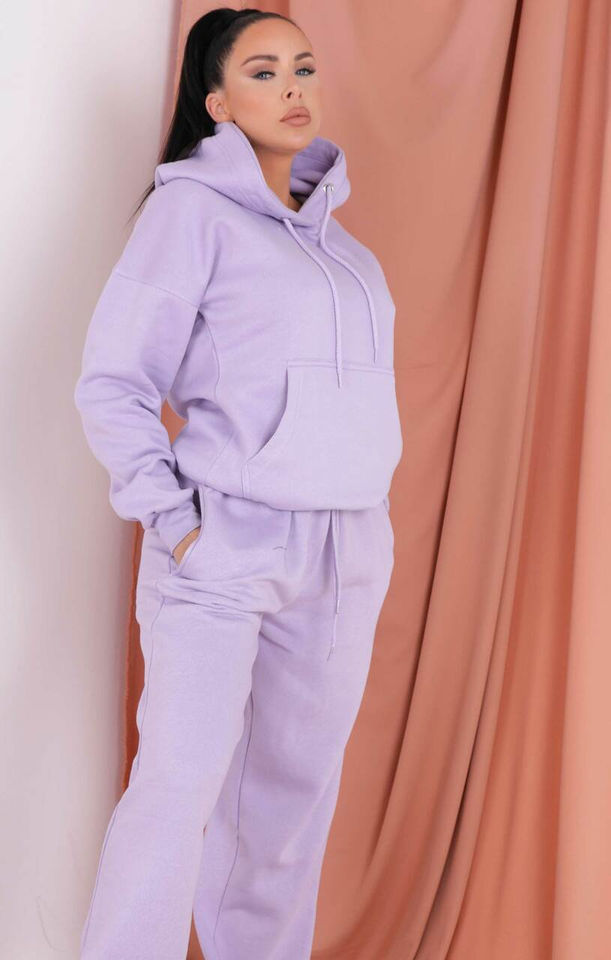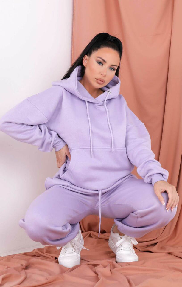 ชุดจ็อกเกอร์คอกลมของผู้หญิง2ชิ้นผ้าคอตตอน100% ม่วงชุดจ็อกเกอร์มีฮู้ดระบายอากาศได้ดี