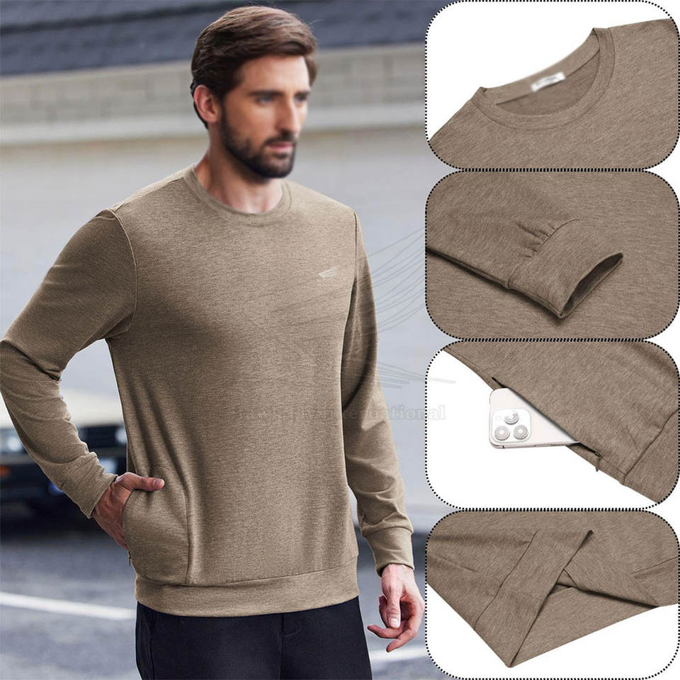 เสื้อสเวตเชิ้ตแขนยาวบุขนสำหรับผู้ชาย คุณภาพสูง ใส่สบายในฤดูหนาว ผ้าฝ้าย 100% ระบายอากาศได้ดี