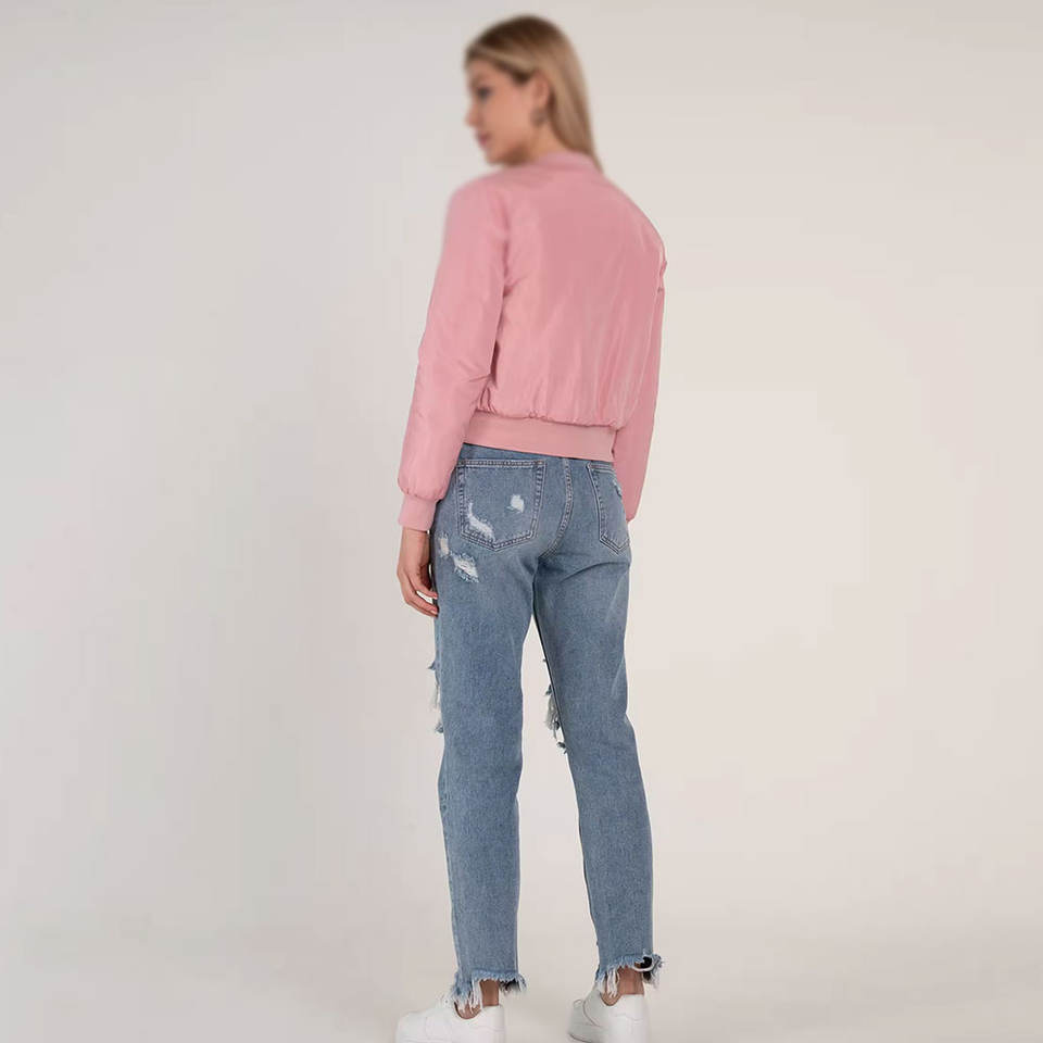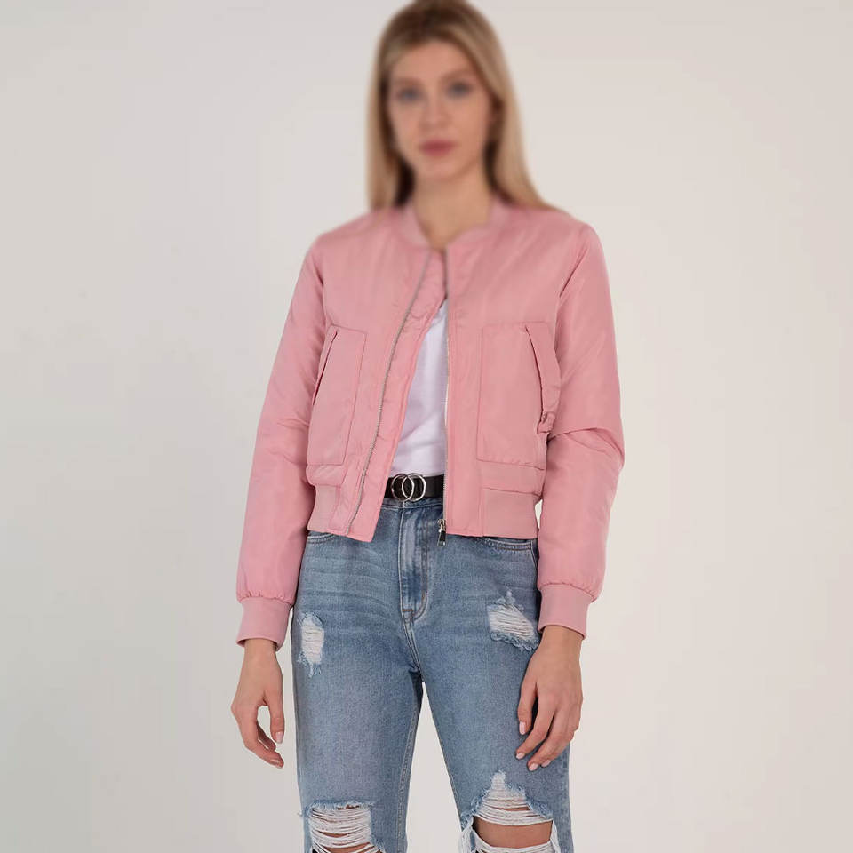 แจ็กเก็ตนักบินบอมเบอร์สำหรับผู้หญิงสไตล์สตรีทแวร์เสื้อแจ็คเก็ตบอมเบอร์สำหรับฤดูหนาว