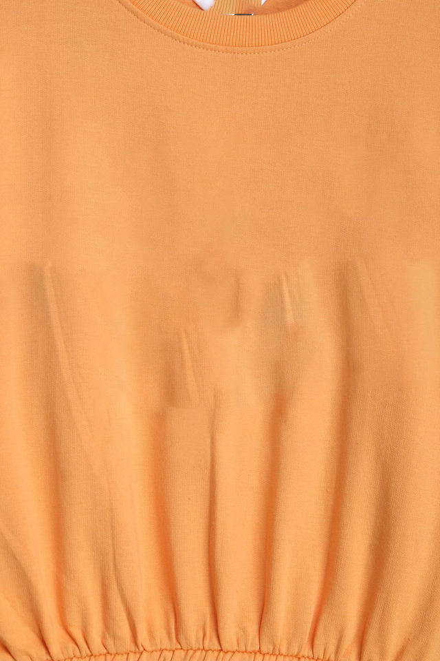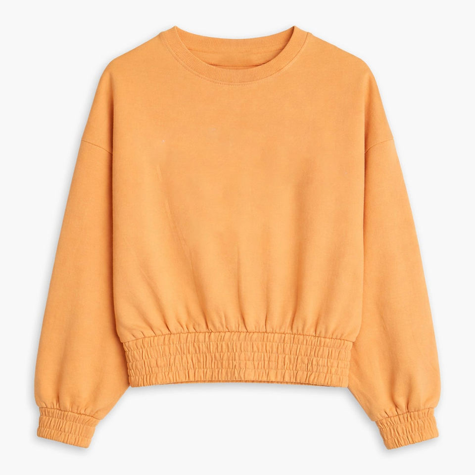 เสื้อสเวตเชิ้ตคอกลมสีส้มทรงโอเวอร์ไซส์สำหรับผู้หญิง ดีไซน์ทันสมัยสไตล์ยุโรปสำหรับฤดูหนาว คุณภาพสูง ผ้าฝ้ายเนื้อนุ่ม ด้านหน้าบุซับใน พร้อมดีเทลขอบแขนแบบยืดหยุ่น