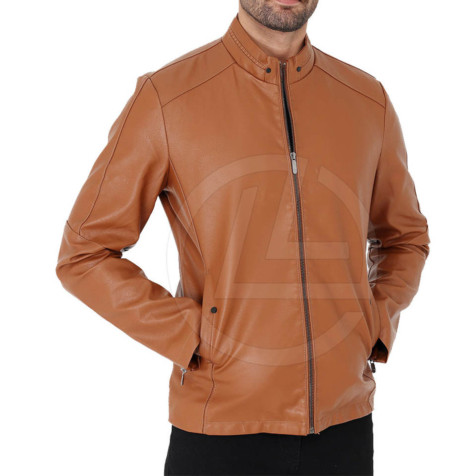 แจ็คเก็ตหนังแกะคุณภาพสูงสำหรับผู้ชาย สไตล์ทรัคเกอร์ สำหรับฤดูหนาว พร้อมซิปด้านหน้าและปกคอตั้ง ผ้าแคนวาส