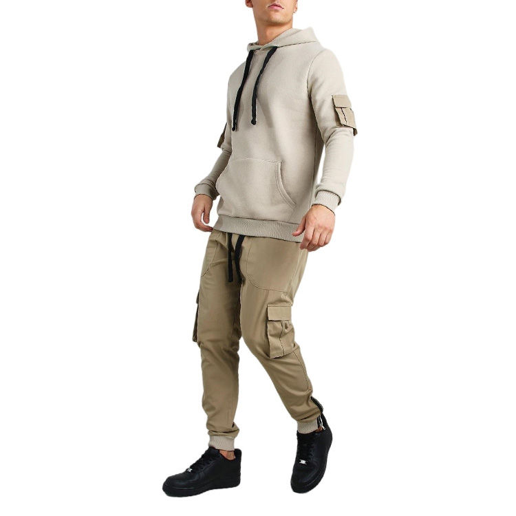 เสื้อฮู้ดดี้แขนยาวคุณภาพสูงสำหรับฤดูหนาว มีเชือกผูก กระเป๋าคาร์โก้ ทรงปกติ กางเกงจ็อกเกอร์ผ้าทวิล ขนฟลีซ ผ้าฝ้าย 100% แห้งเร็ว สำหรับผู้ชาย
