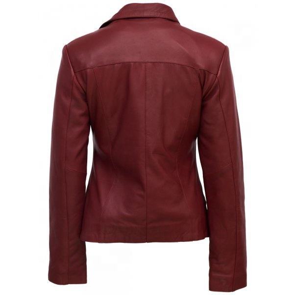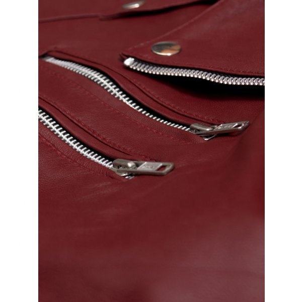 แจ็กเก็ตผู้หญิงสไตล์ Maroon BIKER สีน้ำตาลเข้มบุหนังแกะแท้บุด้วยหนังนุ่มบุด้านใน100% ตามสั่งสำหรับฤดูหนาว