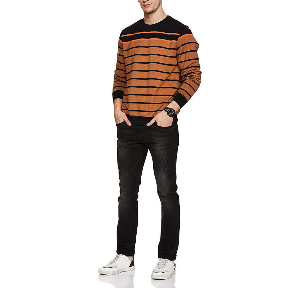 เสื้อสเวตเตอร์ขนแกะของผู้ชายเสื้อสเวตเตอร์ลายทางลำลองสำหรับฤดูหนาว