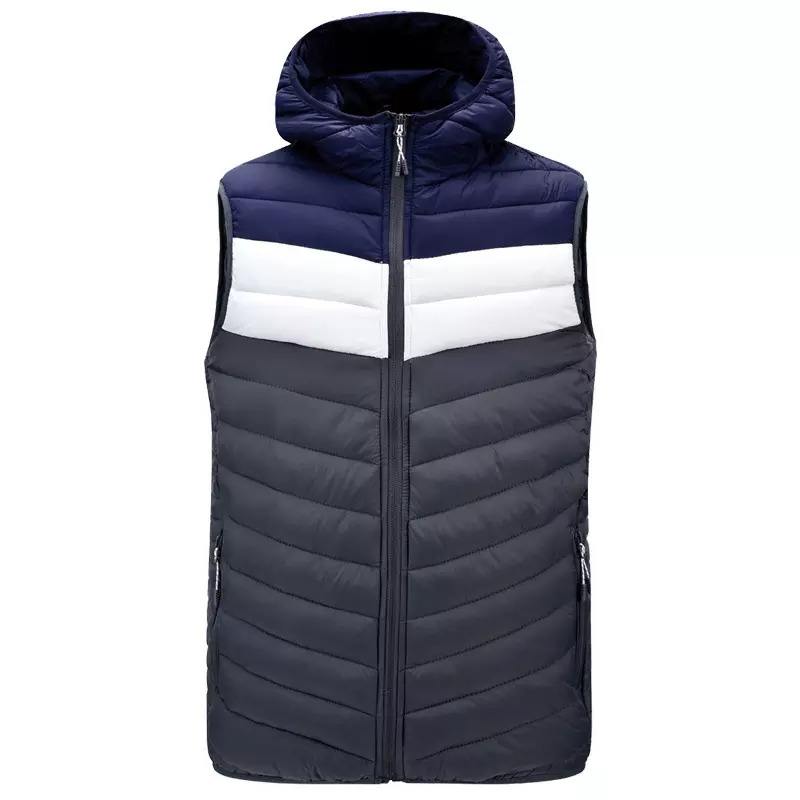 เสื้อกั๊กพัฟเฟอร์ผู้ชายคุณภาพสูงสำหรับฤดูหนาว ขนาดใหญ่พิเศษ สไตล์ลำลอง ทรงหลวม สีพื้น ไม่มีแขน อุ่นสบาย ผลิตจากโรงงาน เสื้อผ้าชั้นนอก