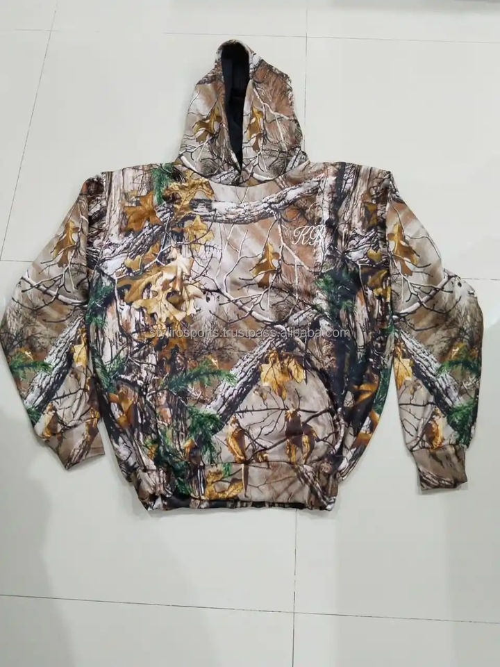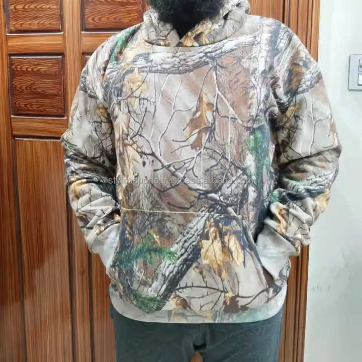 เสื้อฮู้ดดี้ผู้ชายคุณภาพสูงสำหรับล่าสัตว์กลางแจ้งในฤดูหนาว พร้อมลายพิมพ์ดิจิทัล บุขนแกะ กันลม