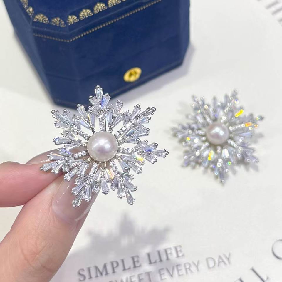 เข็มกลัดมุกน้ำจืดลายเกล็ดหิมะคุณภาพสูง แฟชั่นใหม่ รูปดอกไม้ เครื่องประดับติดหน้าอก ขายส่งและขายปลีก