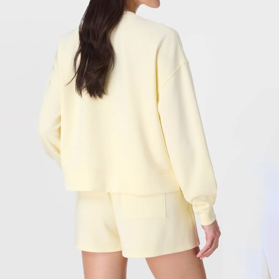 ชุดเซ็ตสองชิ้นคุณภาพสูงสำหรับฤดูหนาว เสื้อสเวตเชิ้ตแขนยาวทรงหลวมแบบดรอปโชว์เดอร์ กางเกงขาสั้น ผ้าฟลีซ ผลิตตามสั่ง เป็นมิตรกับสิ่งแวดล้อม