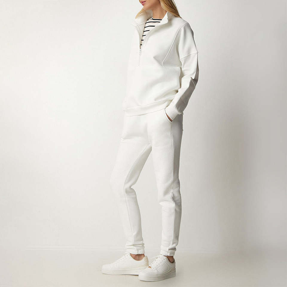 ชุดวอร์มลำลองสำหรับผู้หญิง ผลิตจากผ้าฝรั่งเศสเทอร์รี่คุณภาพสูง ระบายอากาศได้ดี เหมาะสำหรับฤดูหนาว แบบมีฮู้ดและกางเกงขาบาน ผลิตตามหลักสิ่งแวดล้อม