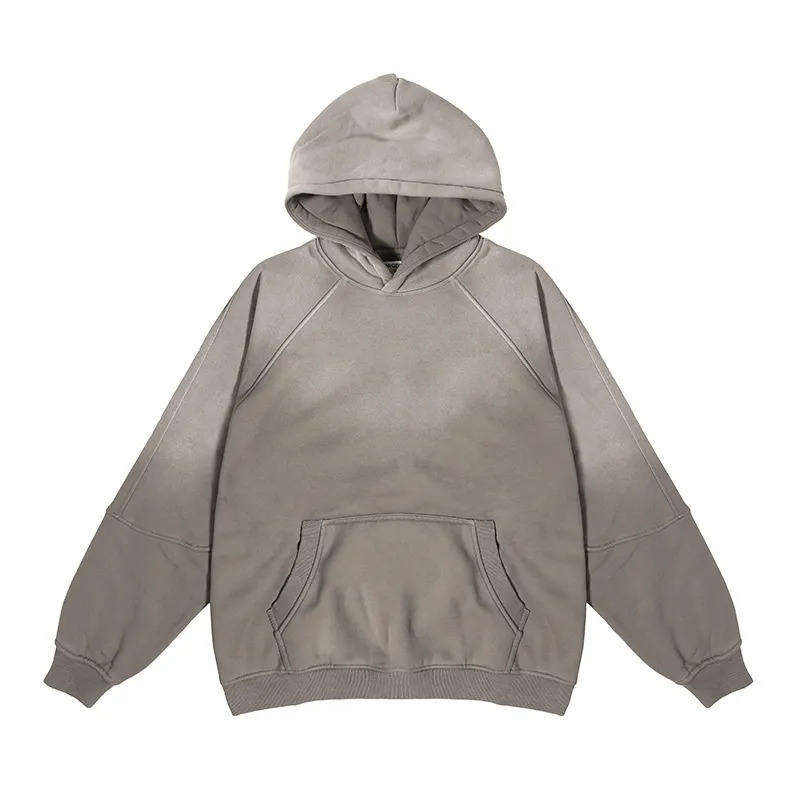 เสื้อฮู้ดผ้าฟลีซผ้าฝ้าย 100% คุณภาพสูง สไตล์วินเทจฟอกสีแบบดับเบิ้ลเลเยอร์ สำหรับผู้ชาย ผลิตตามแบบ OEM