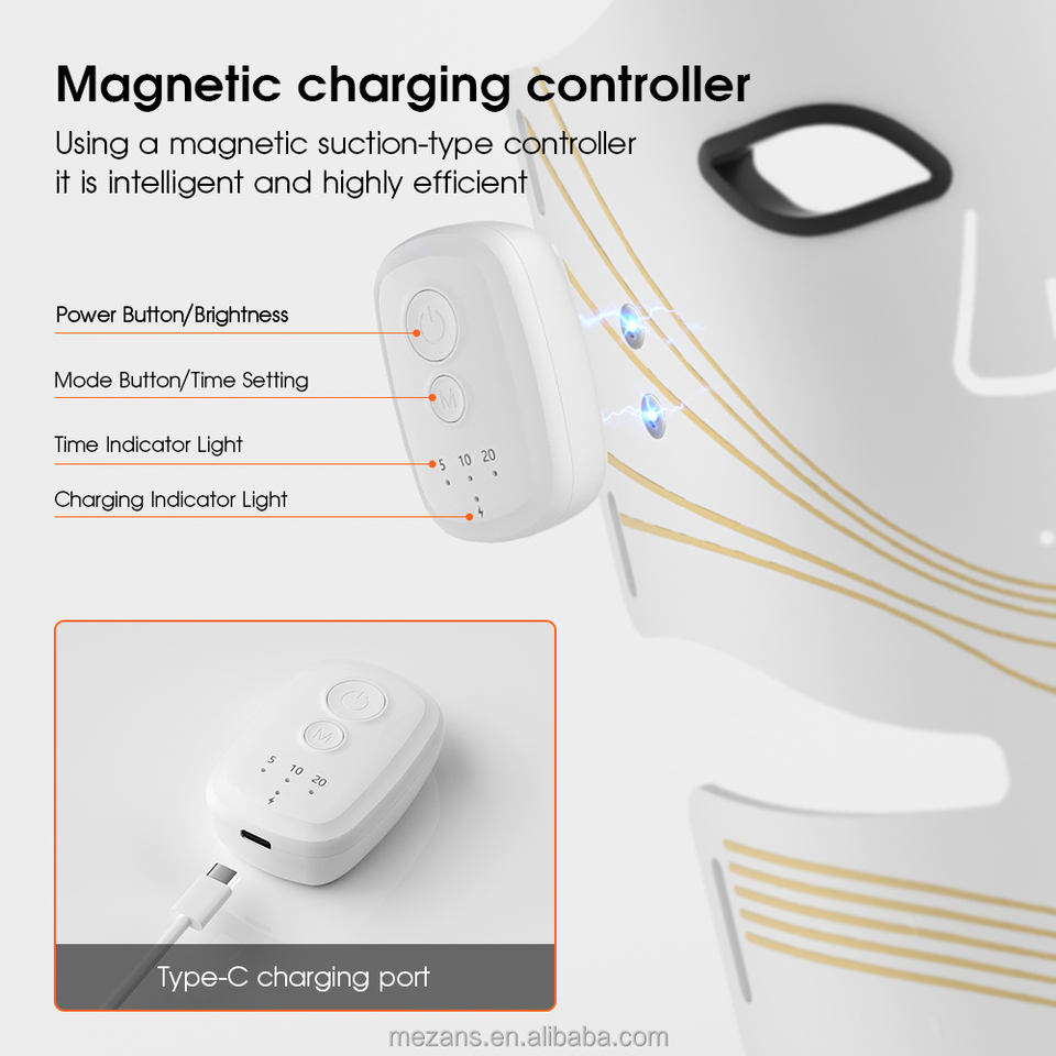 หน้ากาก LED ไร้สายคุณภาพสูง 4 สี สำหรับดูแลผิวหน้าแบบพกพา พร้อมที่ครอบคอ 408 หลอดไฟ