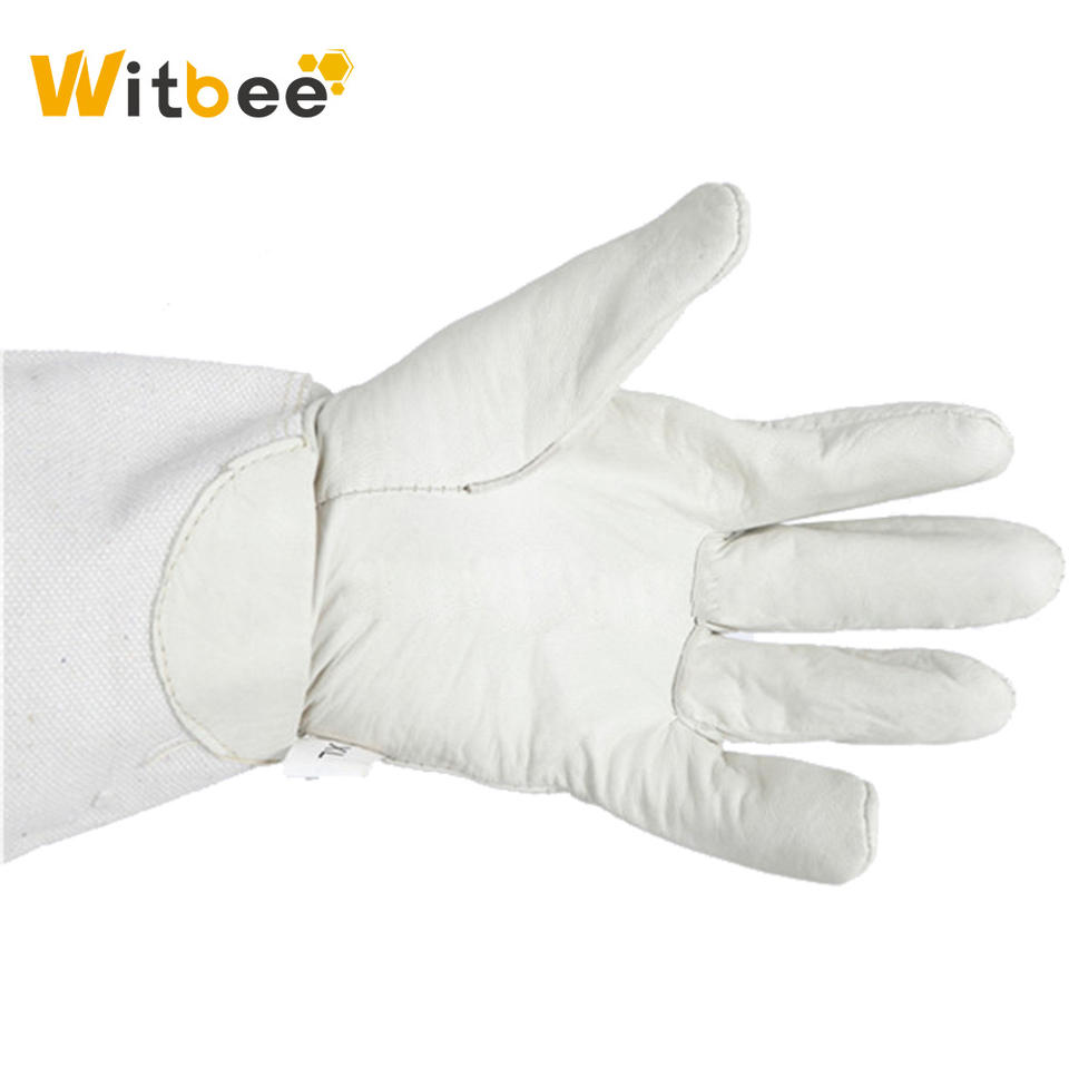 ถุงมือเลี้ยงผึ้งคุณภาพสูง Witbee BG-4 สีขาว ขนาด XL ทำจากหนังแกะ ทนทาน ระบายอากาศได้ดี พร้อมตาข่ายยางและผ้าฝ้าย ป้องกันมือและแขน