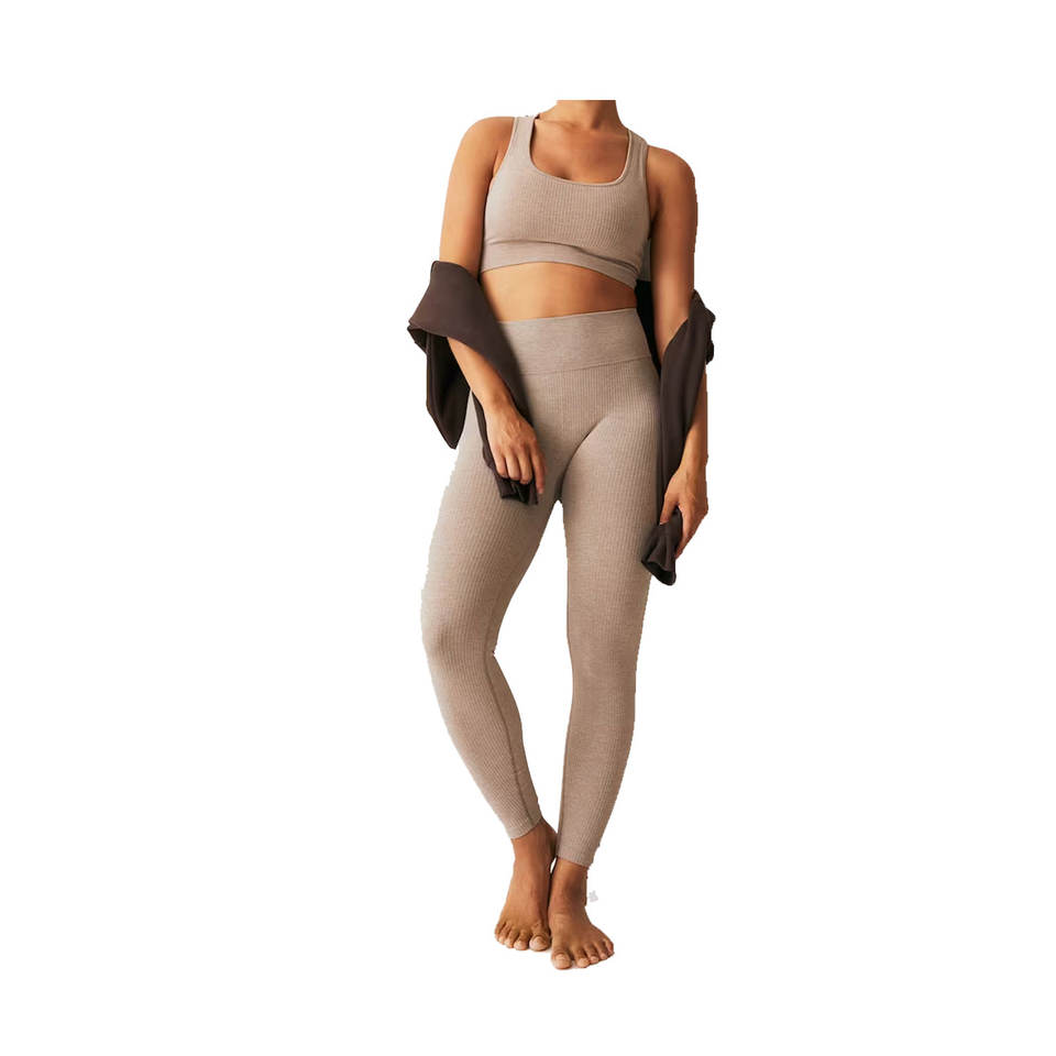 ชุดรัดรูปสำหรับผู้หญิงชุดโยคะพร้อมกางเกงเลกกิ้งและบราไร้รอยต่อสำหรับออกกำลังกายและฟิตเนส