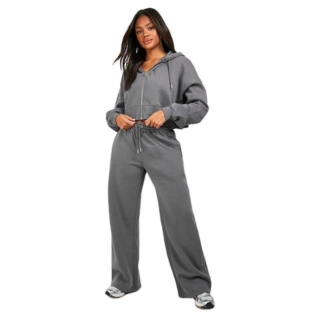 ชุดเซ็ต 2 ชิ้น เสื้อฮู้ดซิปและกางเกงจ็อกเกอร์เอวยางยืดพร้อมเชือกผูก ดีไซน์สวยคุณภาพสูงสำหรับผู้หญิง ทรงพอดีตัว