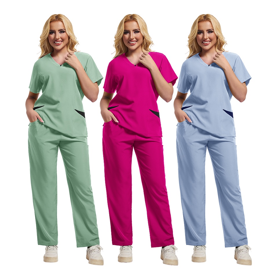 ชุดเครื่องแบบพยาบาลแพทย์2ชิ้นเข้ารูปสำหรับผู้หญิงชุดเครื่องแบบขัดโลโก้ทางการแพทย์ออกแบบได้ตามต้องการ