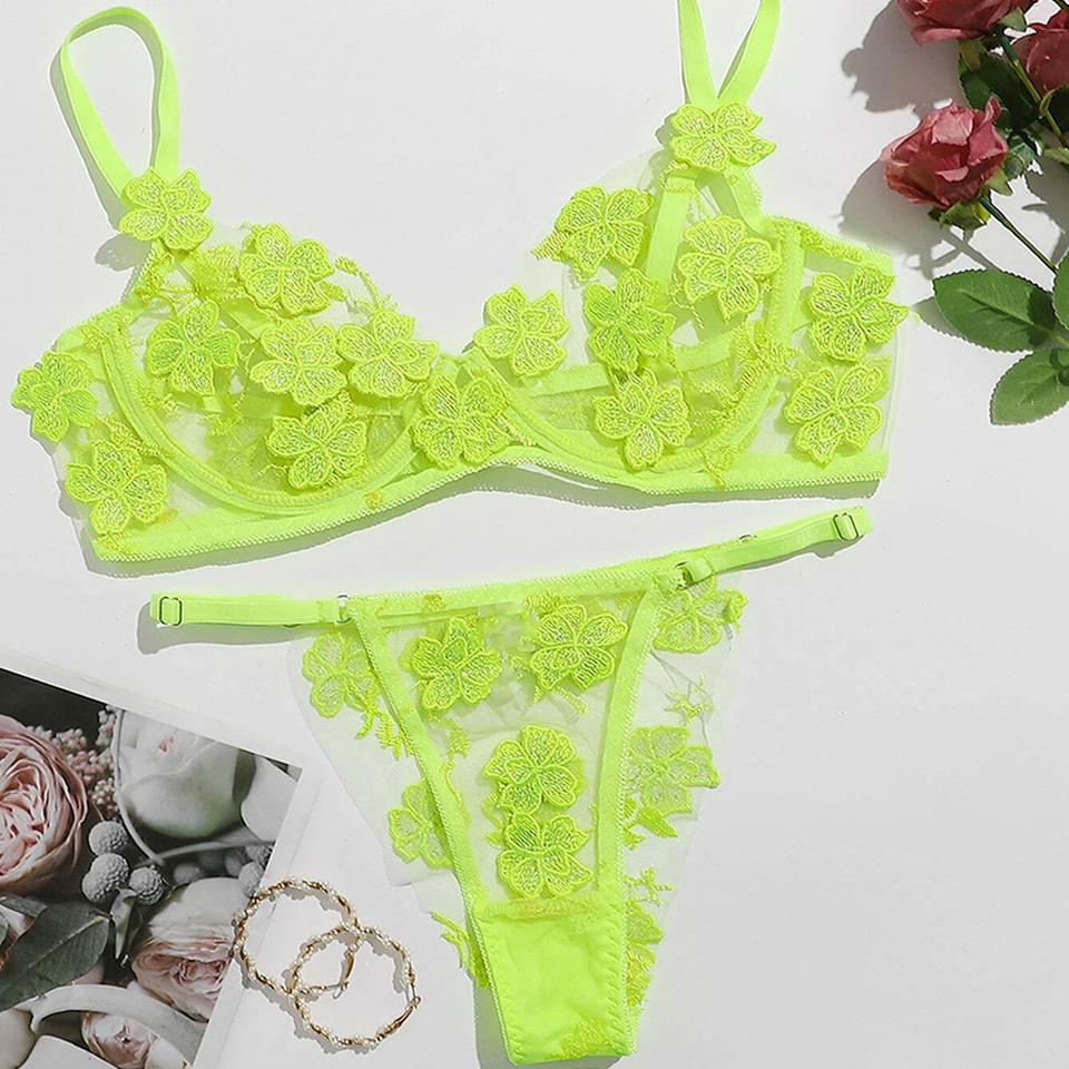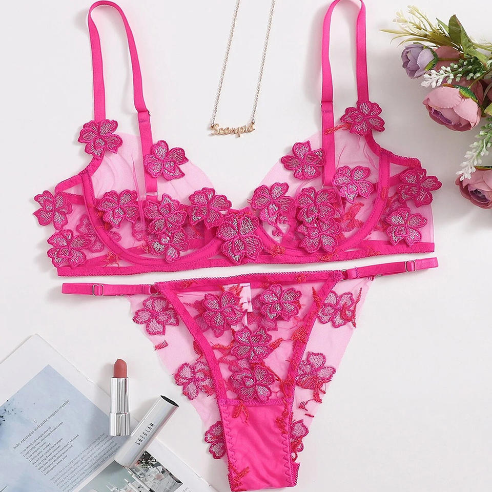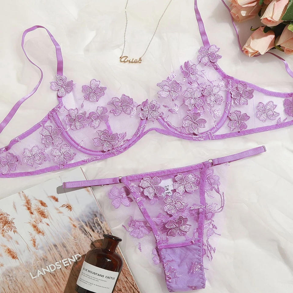 เซ็ตชุดชั้นในลูกไม้ซีทรูสำหรับผู้หญิงชุดบรากางเกงในสำหรับงานแต่งงานเซ็กซี่สำหรับผู้หญิง