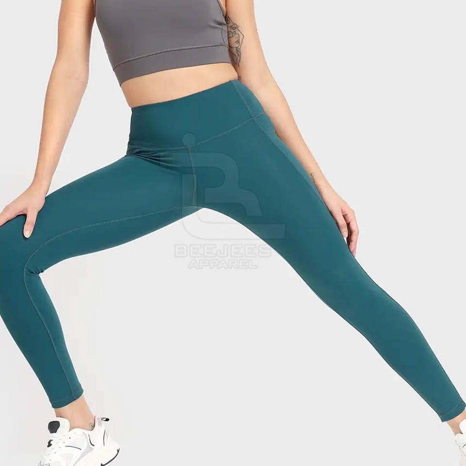 เลกกิ้งผู้หญิงคุณภาพสูง ระบายอากาศได้ดี แห้งเร็ว เอวกลาง สีพื้น สำหรับออกกำลังกาย ไร้ตะเข็บ ผลิตจากผ้าฝ้าย 100% ผลิตในปากีสถาน
