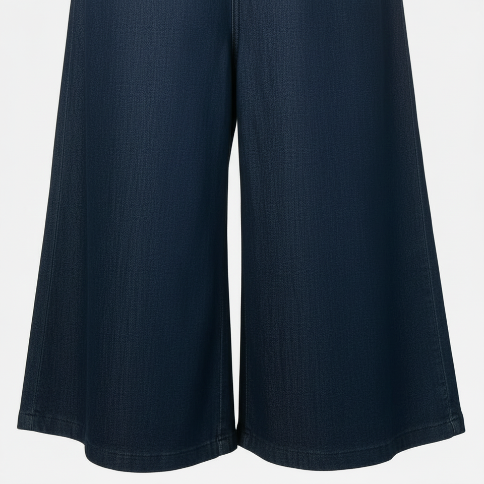 กางเกงผู้หญิงขาสั้นขาบานผ้ายีนส์สีน้ำเงินสไตล์วินเทจทรงสลิมฟิต