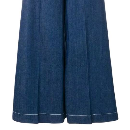 กางเกงผู้หญิงขาสั้นขาบานผ้ายีนส์สีน้ำเงินสไตล์วินเทจทรงสลิมฟิต