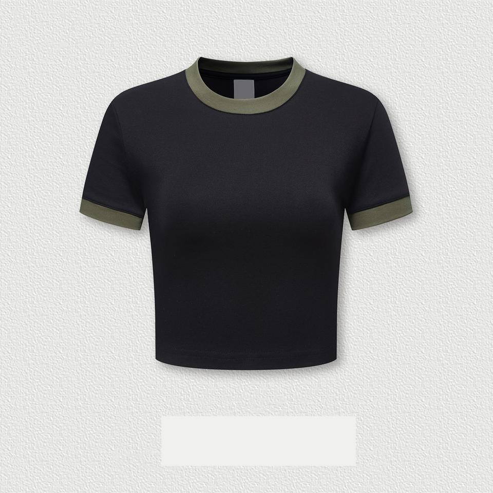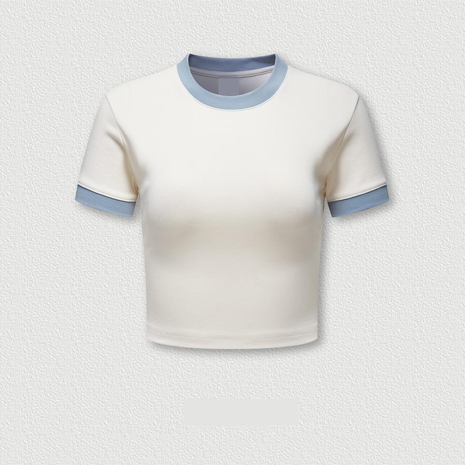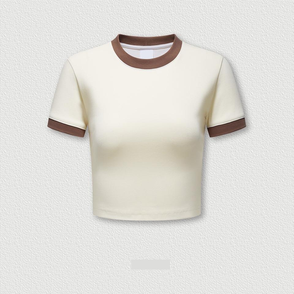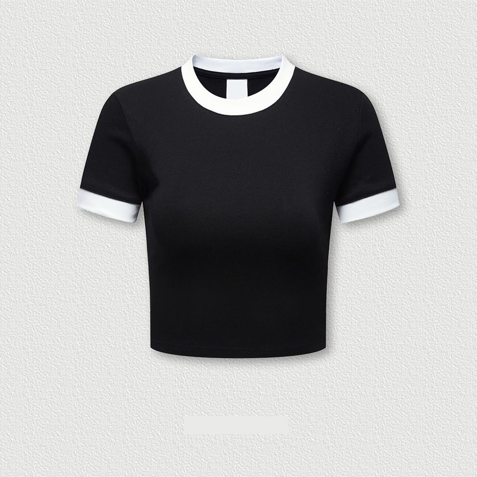 ชื่อสินค้า:เสื้อยืดผู้หญิง แขนสั้น แต่งขอบ ปรับแต่งได้
