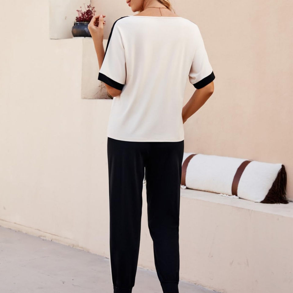 ชุดวอร์มฤดูร้อนคุณภาพสูงสำหรับผู้หญิง เสื้อยืดและกางเกงขายาวผ้าฝ้าย 100% ระบายอากาศได้ดี แห้งเร็ว น้ำหนักเบา