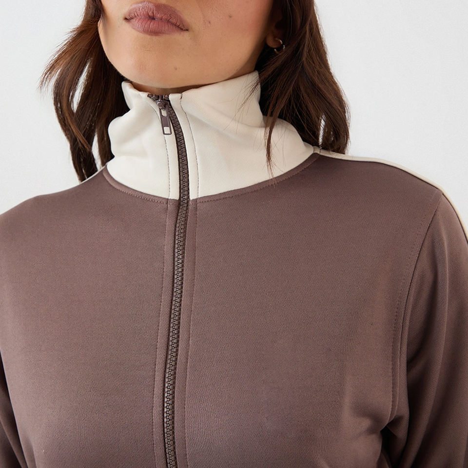 เสื้อสเวตเชิ้ตผู้หญิงคุณภาพสูง ดีไซน์บล็อกสี สำหรับผู้ซื้อขายส่งจำนวนมาก ราคาโรงงาน ปี 2026 พร้อมโลโก้สั่งทำและแขนยาว
