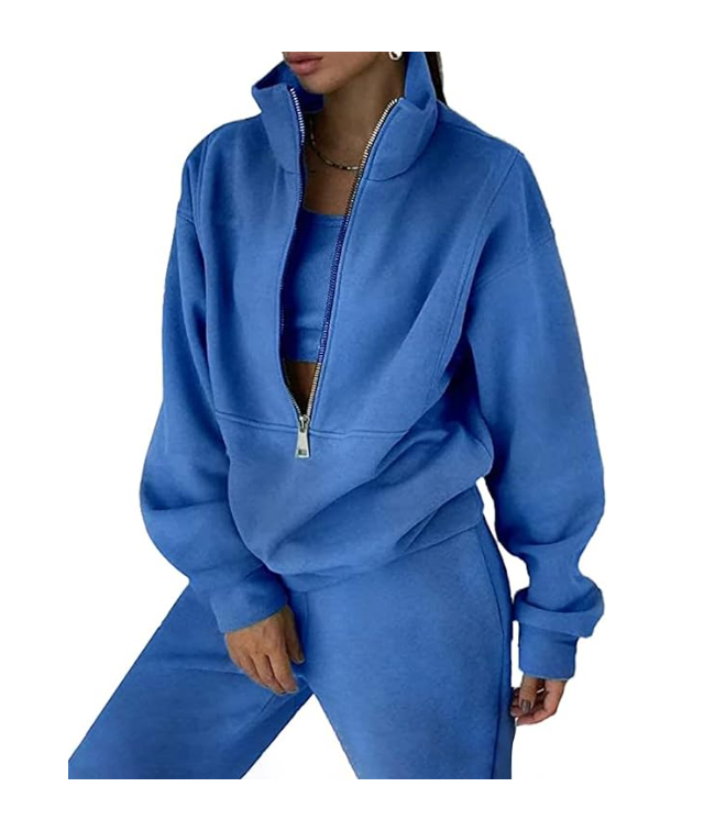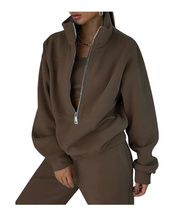 ชุดสเวตเตอร์แบบสวมหัวซิปสองชิ้นสำหรับผู้หญิงชุดเสื้อสเวตเตอร์และกางเกงวิ่งจ็อกเกอร์แบบถัก