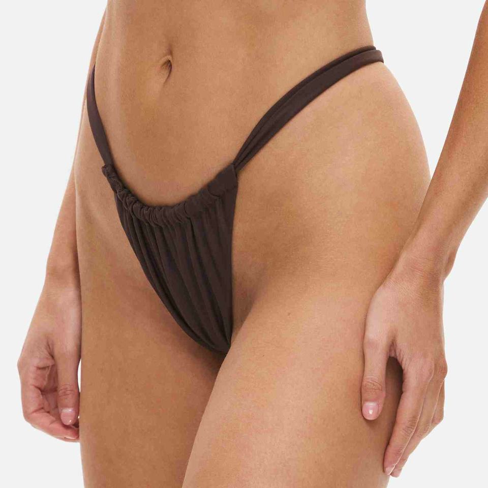 ชุดบิกินี่สองชิ้นคุณภาพสูงสำหรับผู้หญิง เอวสูง สายคาดโลโก้ ผ้าตาข่าย ลายเรียบ แห้งเร็ว ชุดว่ายน้ำแบบ Thong ชุดชายหาดสำหรับผู้หญิง