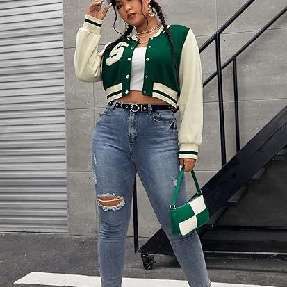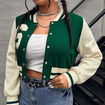 แจ็กเก็ตผู้หญิงขนาดใหญ่เสื้อแจ็กเก็ตบอมเบอร์ปักลายตัวอักษรแฟชั่นสไตล์วิทยาลัยขายส่ง