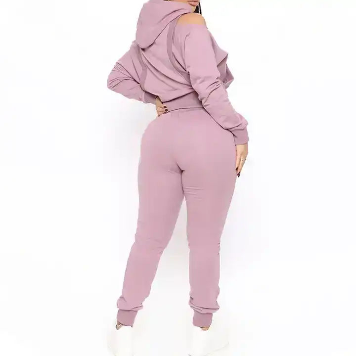 ชุดสเวตเตอร์และเสื้อครอปมีฮู้ดสำหรับผู้หญิงชุดออกกำลังกายแนวสตรีท2ชิ้นทำจากผ้าฝ้าย100% มีฮู้ดสำหรับฤดูหนาว