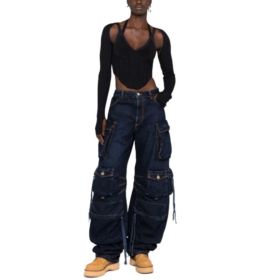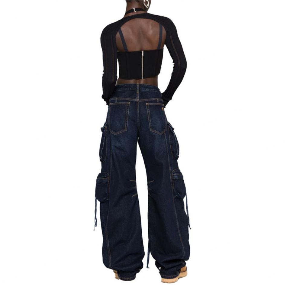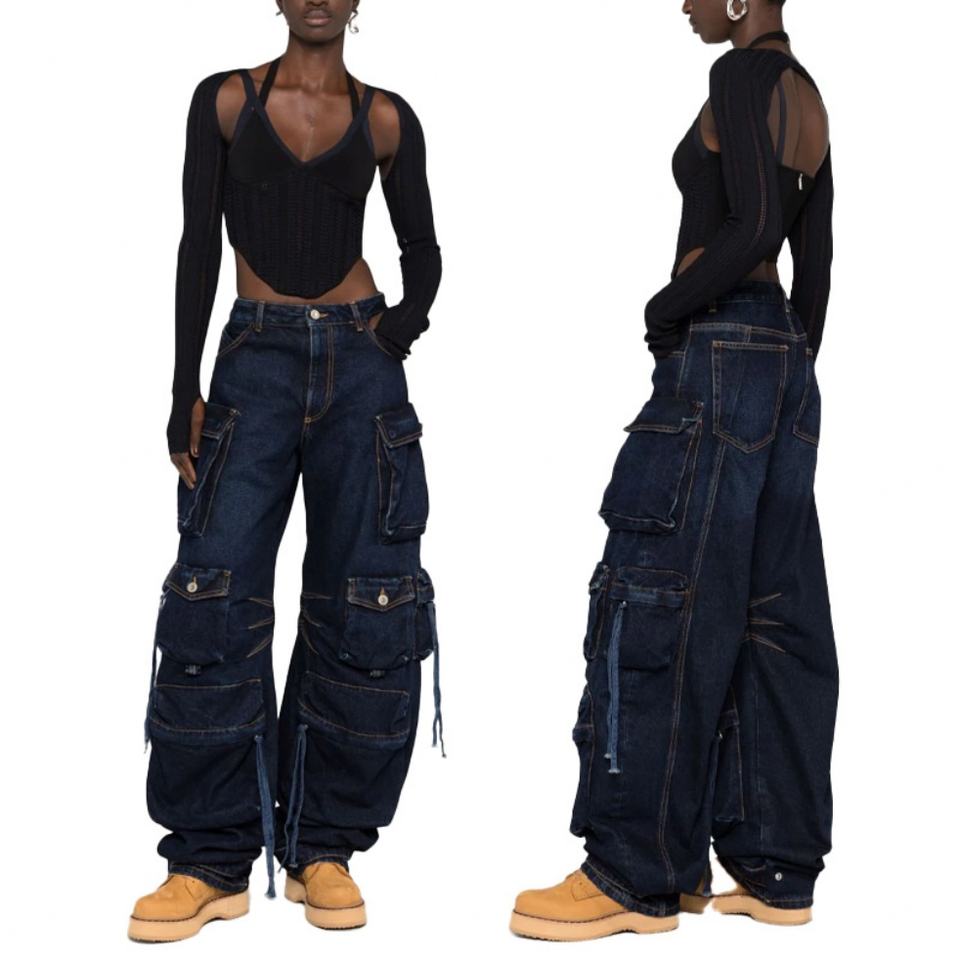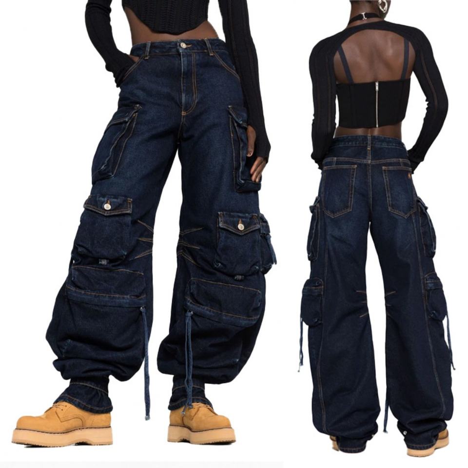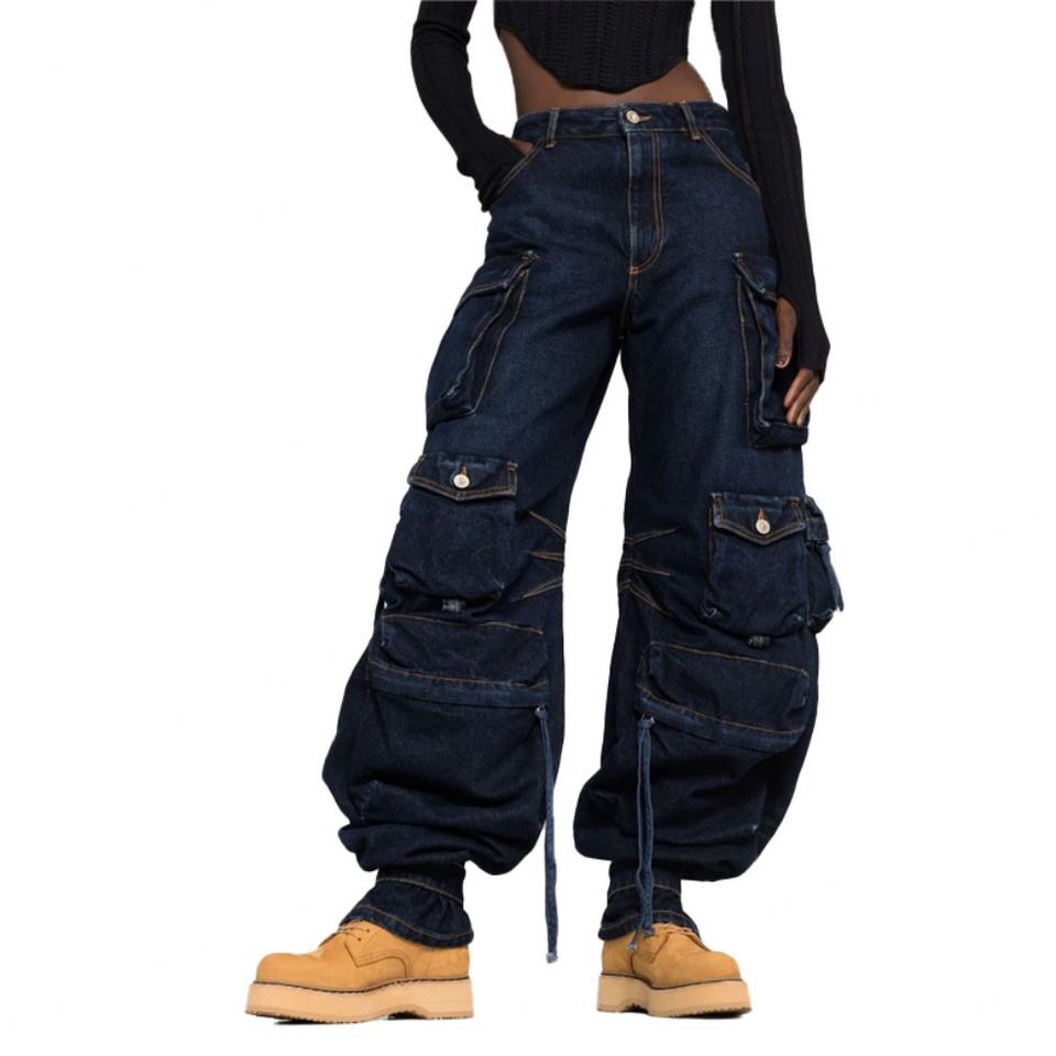 กางเกงคาร์โก้ทรงหลวมคุณภาพสูงสำหรับผู้หญิง สไตล์สตรีทแวร์ Tideway Y2K หลายกระเป๋า ทรงสบายๆ กางเกงคาร์โก้ยีนส์หลวมๆ