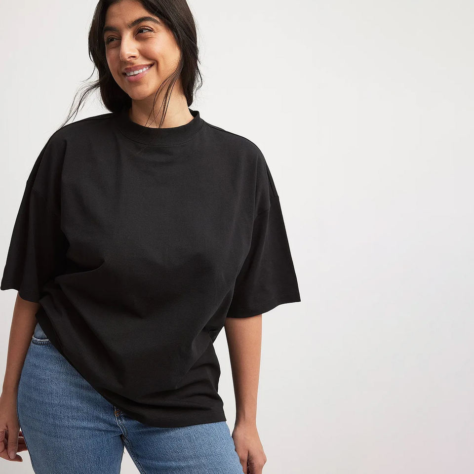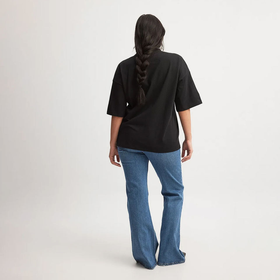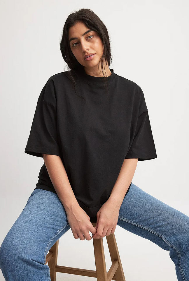 เสื้อยืดผู้หญิงสีดำทรงเข้ารูปคุณภาพสูง ลายทางรักษ์โลก ผลิตจากโพลีเอสเตอร์/คอตตอน คอริบหนา ไหล่ตก สไตล์สตรีทแวร์