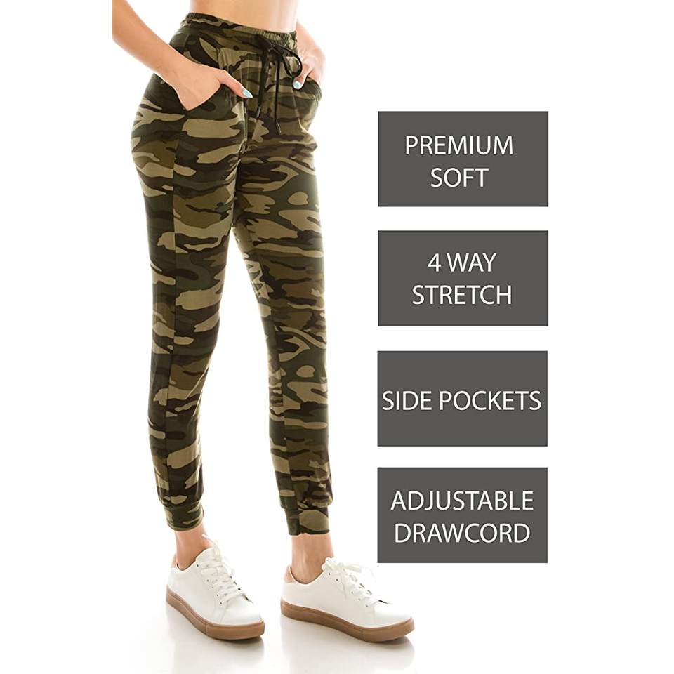 กางเกงวิ่งลายพรางคุณภาพสูงของผู้หญิงกางเกงลำลองเนื้อนุ่มดีไซน์ใหม่พร้อมเอวยางยืดและกระเป๋าเอวกลางสำหรับฤดูร้อน!