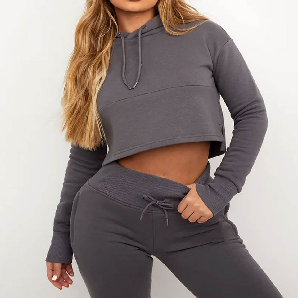 เสื้อครอปฮู้ดดี้ผู้หญิงคุณภาพสูง ดีไซน์คลาสสิกทันสมัย ป้องกันการเกิดขุย ระบายอากาศได้ดี เหมาะสำหรับฤดูหนาว