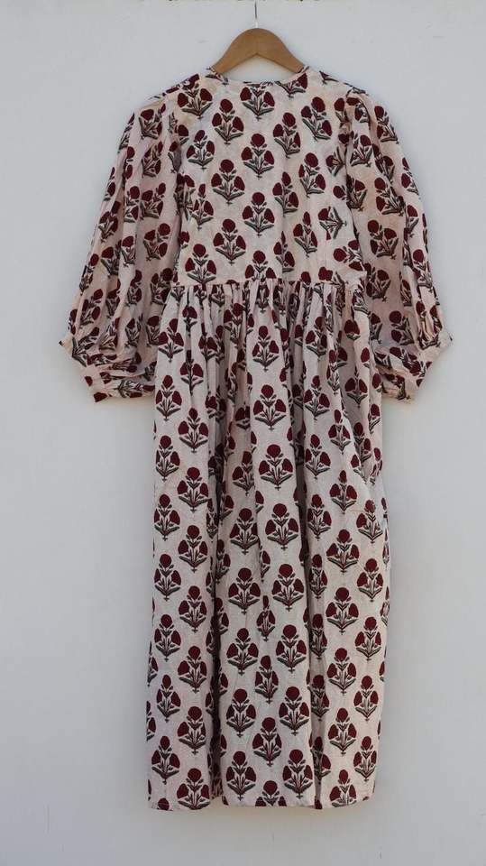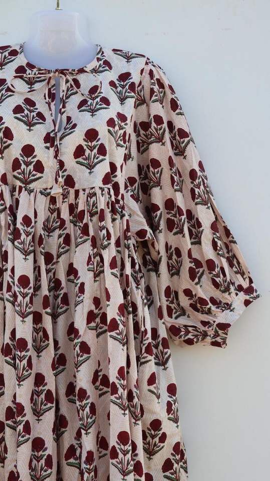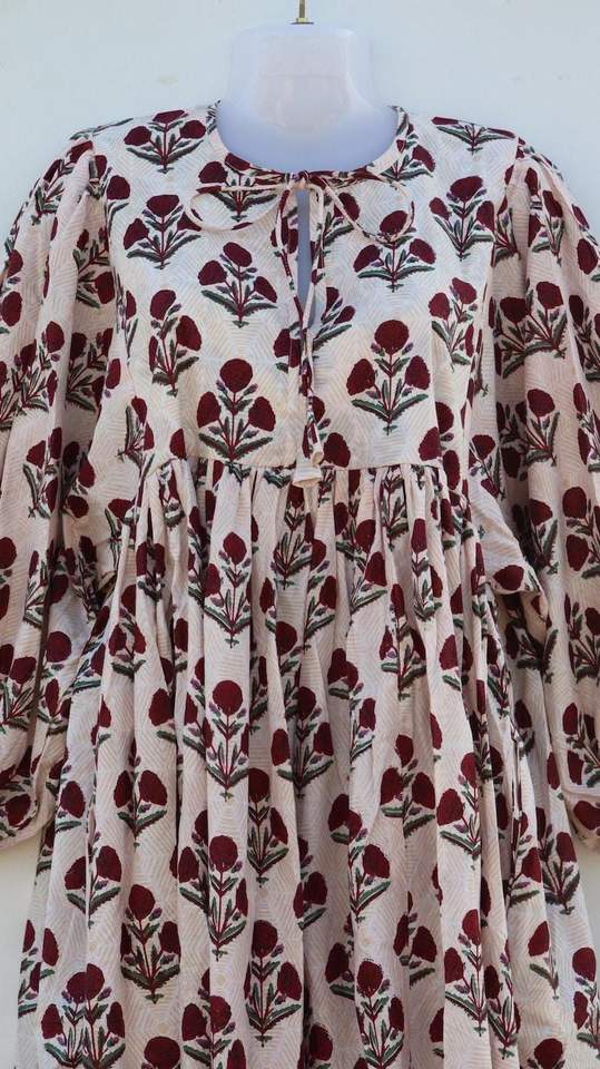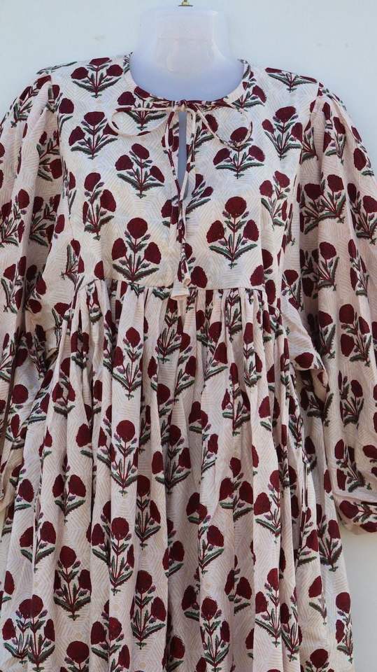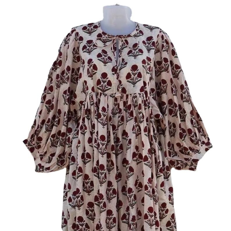 เดรสสั้นพิมพ์ลายดอกไม้สำหรับผู้หญิง, เดรสกระโปรงสั้นผ้าฝ้ายลายดอกไม้มีเอกลักษณ์ตรงเอวตามธรรมชาติ