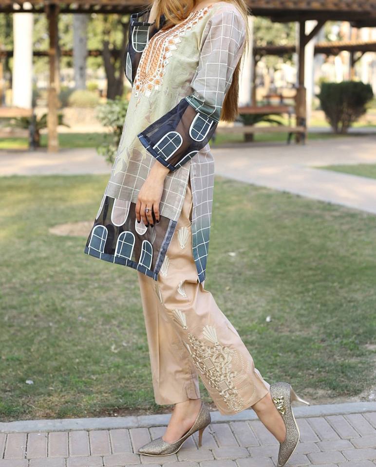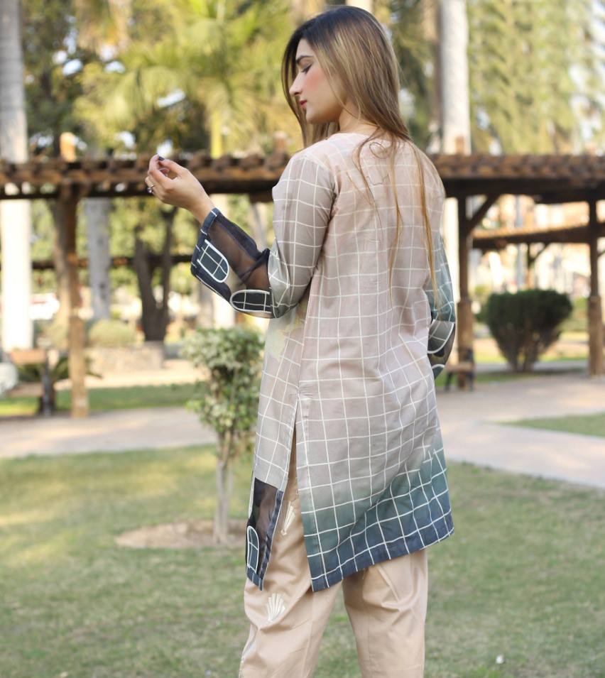 ชุดคุर्ติผ้าลินินผสมฝ้ายวิสโคสไหมเรยอนสีเทาคุณภาพสูงสำหรับผู้หญิง แบรนด์มาซูรี ผลิตในปากีสถาน ระยะเวลาจัดส่งตัวอย่าง 7 วัน