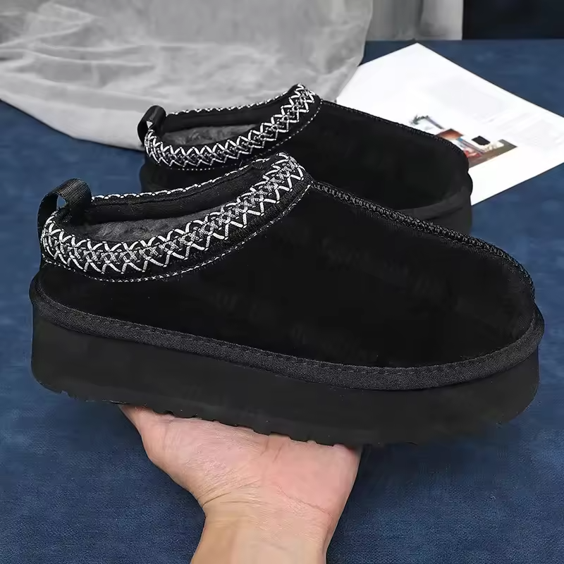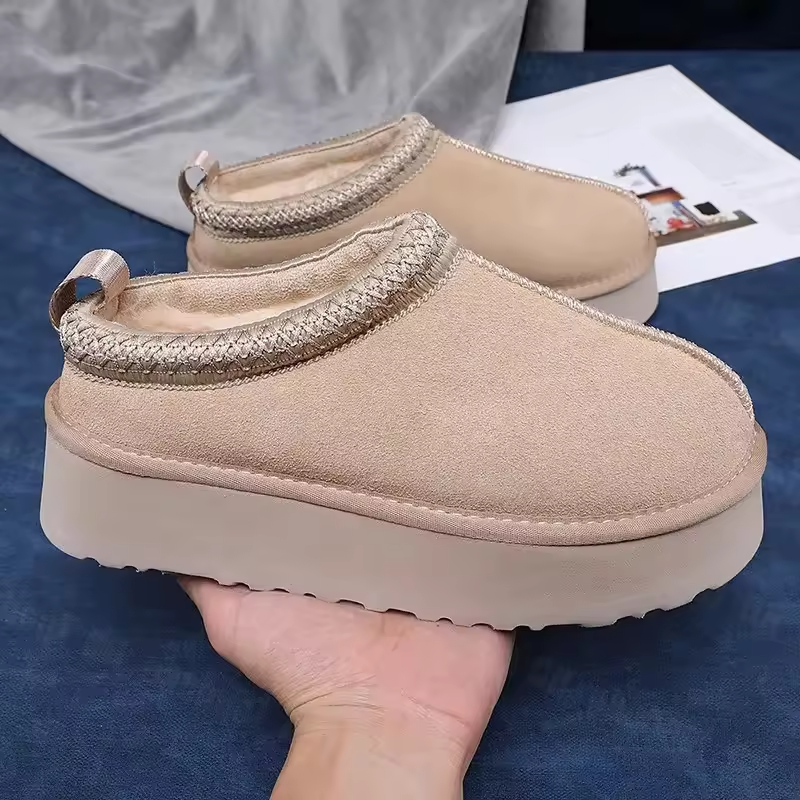 รองเท้าบูทหิมะคุณภาพสูงสำหรับผู้หญิง แบบคลาสสิก สำหรับใส่ในบ้านและนอกบ้าน ทำจากผ้าซาตินและหนังกลับ รองเท้าบูทแฟชั่นพื้นหนา รองเท้าลำลองสุดหรู
