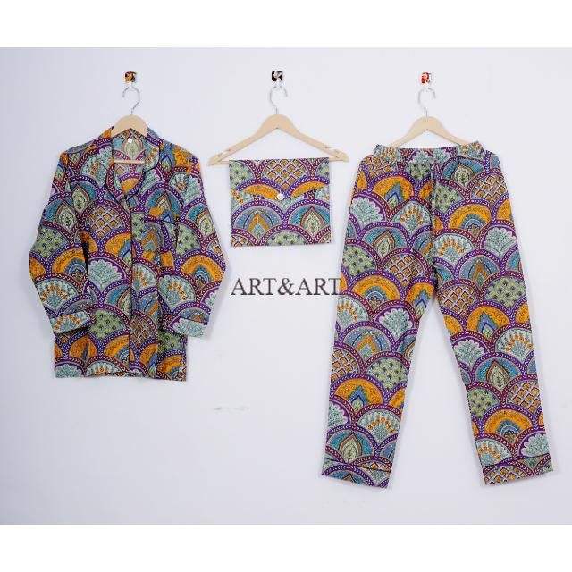 ชุดนอนผู้หญิงคุณภาพสูง ผ้าฝ้าย 100% หลากสี ดีไซน์คลาสสิก แต่งขอบด้วยผ้าปิ๊ปปิ้ง ลายพิมพ์บล็อกด้วยมือ เซ็กซี่ แห้งเร็ว