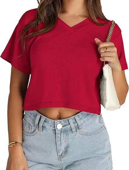เสื้อครอปท็อปผู้หญิงคุณภาพสูง เสื้อยืดคอกว้างแบบพื้นฐานสำหรับฤดูร้อน เสื้อยืดแขนสั้นลำลอง