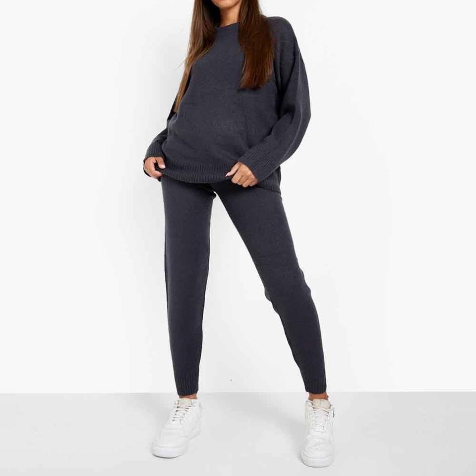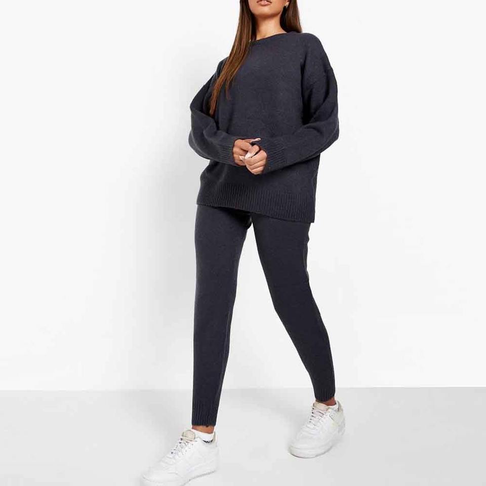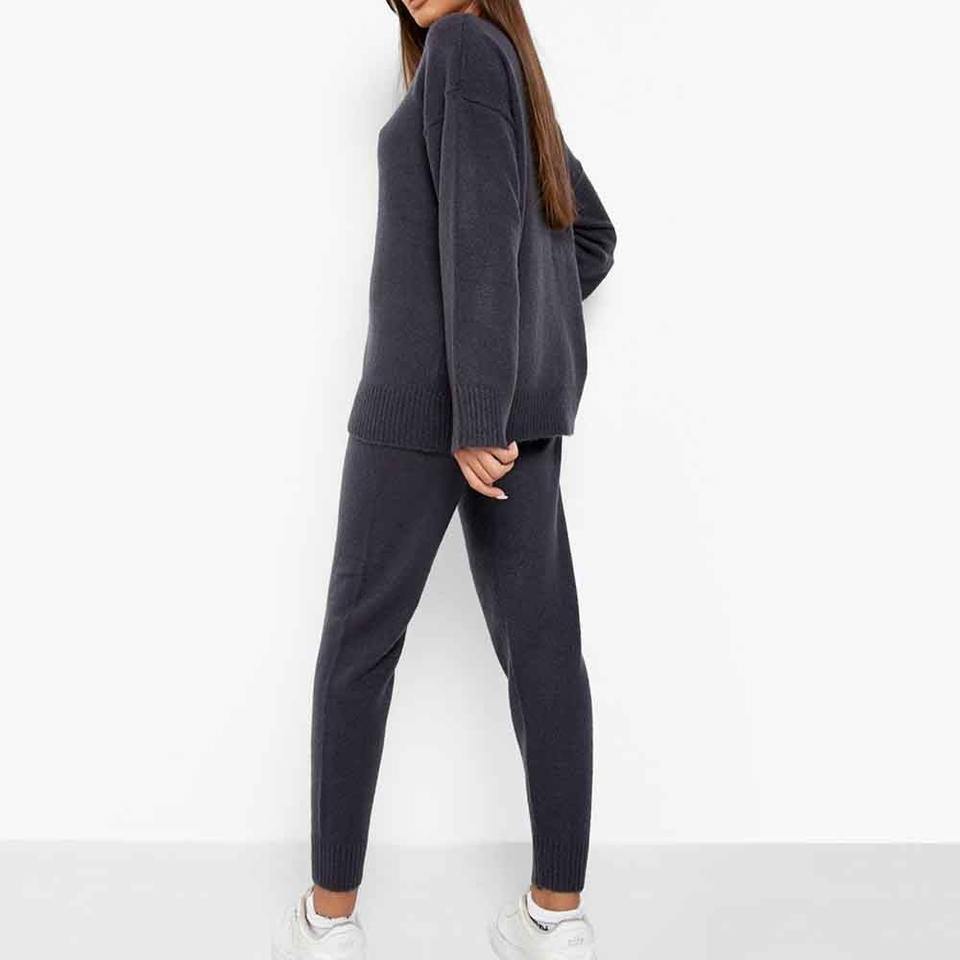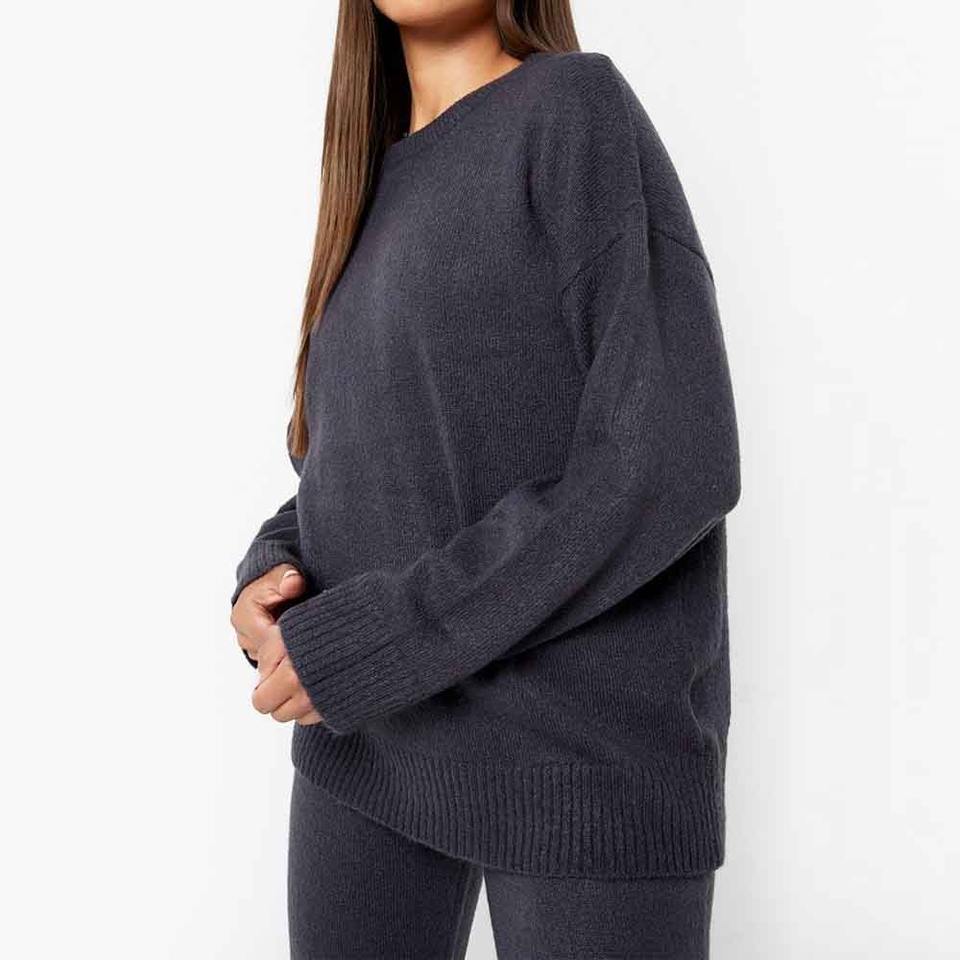 เสื้อสเวตเตอร์แบบสวมหัวคอกลมสีพื้นผ้าขนแกะขนาดใหญ่สวมใส่สบายสำหรับผู้หญิงสวมใส่ทุกวัน