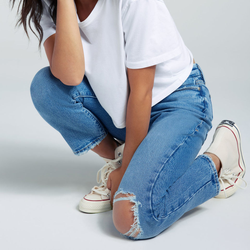 ผ้ายีนส์เอวสูงสำหรับผู้หญิงกางเกงยีนส์เอวสูงผอมกลางล้างคริสตัลกางเกงยีนส์เอวสูงออกแบบได้ตามต้องการ