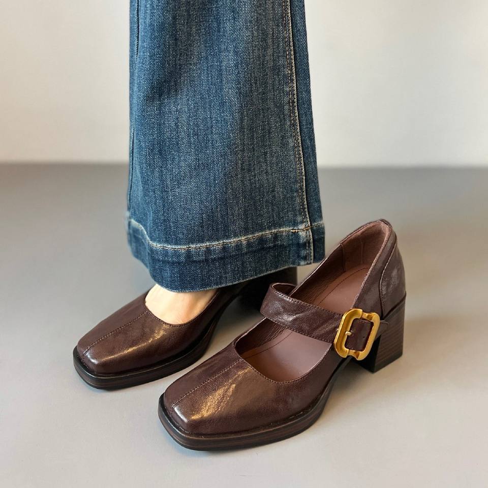 รองเท้าส้นสูงแฟชั่นผู้หญิงคุณภาพสูง หนังแท้ ดีไซน์โดดเด่น ใช้งานได้หลากหลาย สวมใส่สบาย สไตล์ลำลอง