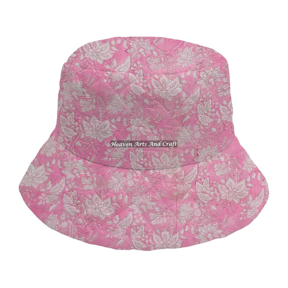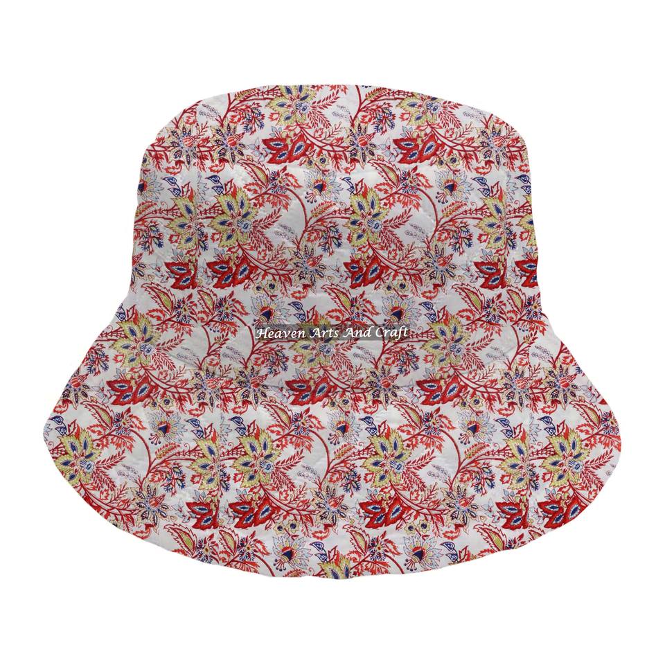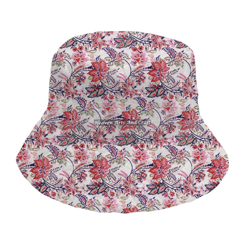 หมวกบักเก็ตทรงชาวประมงคุณภาพสูงสำหรับผู้หญิง พิมพ์ลายบล็อกด้วยมือบนผ้าฝ้ายคุณภาพสูง พร้อมปักโลโก้ตามสั่ง