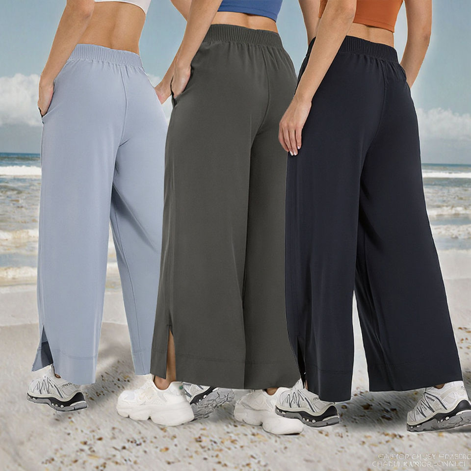 กางเกงวอร์มออกกำลังกายผู้หญิงคุณภาพสูง แห้งเร็ว เอวยางยืด มีเชือกผูก กระเป๋าใหญ่ ขากว้าง เอวกลาง รุ่น DSS074