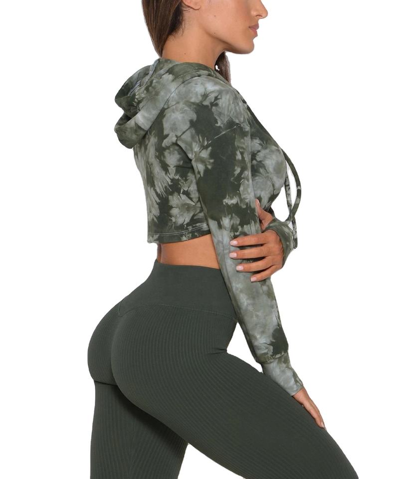 เสื้อฮู้ดครอปแขนยาวคุณภาพสูงสำหรับผู้หญิง สั่งทำได้ ออกแบบลายพิมพ์ด้วยเทคนิค Sublimation ด้านหน้า ใช้ได้ในชีวิตประจำวัน ฤดูหนาว